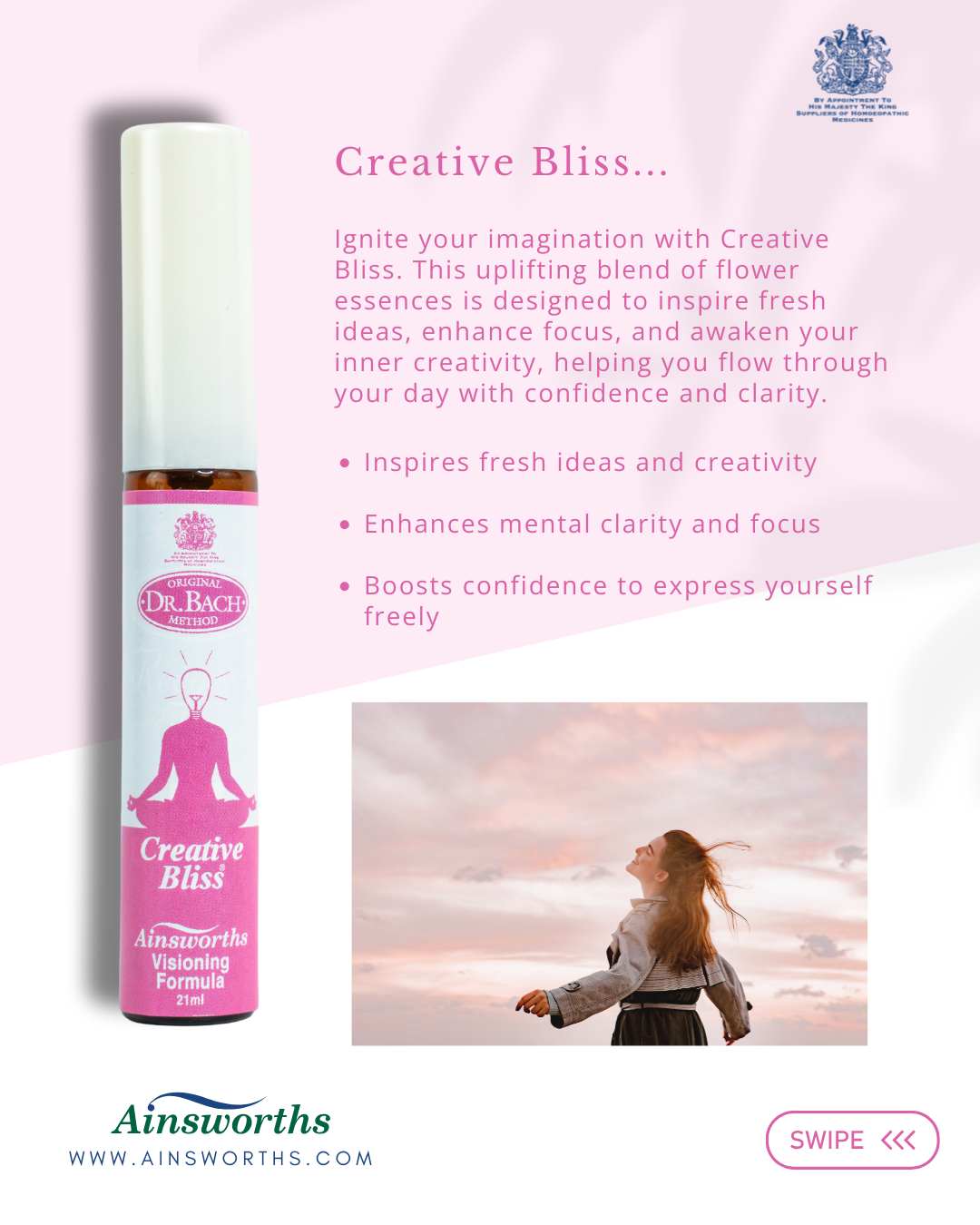 クリエイティブ ブリスで想像力を刺激しましょう。この高揚感のあるフラワーエッセンスのブレンドは、新鮮なアイデアを刺激し、集中力を高め、内なる創造性を目覚めさせ、自信と明晰さをもって一日をスムーズに過ごせるようサポートします。